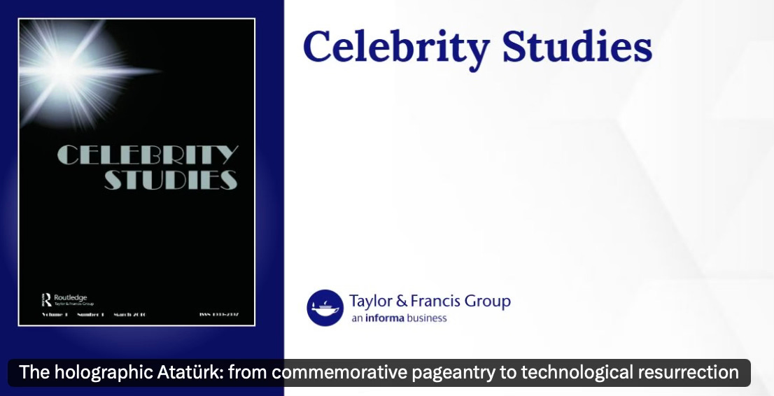 I’m happy to share that our new article, “The Holographic Atatürk: From Commemorative Pageantry to Technological Resurrection,” has just come out in Celebrity Studies. Together with Utku Can Akın, we look at how holographic Atatürks rework the founding father’s image through digital resurrection, necro-branding, speculative realism and new forms of political pageantry.
